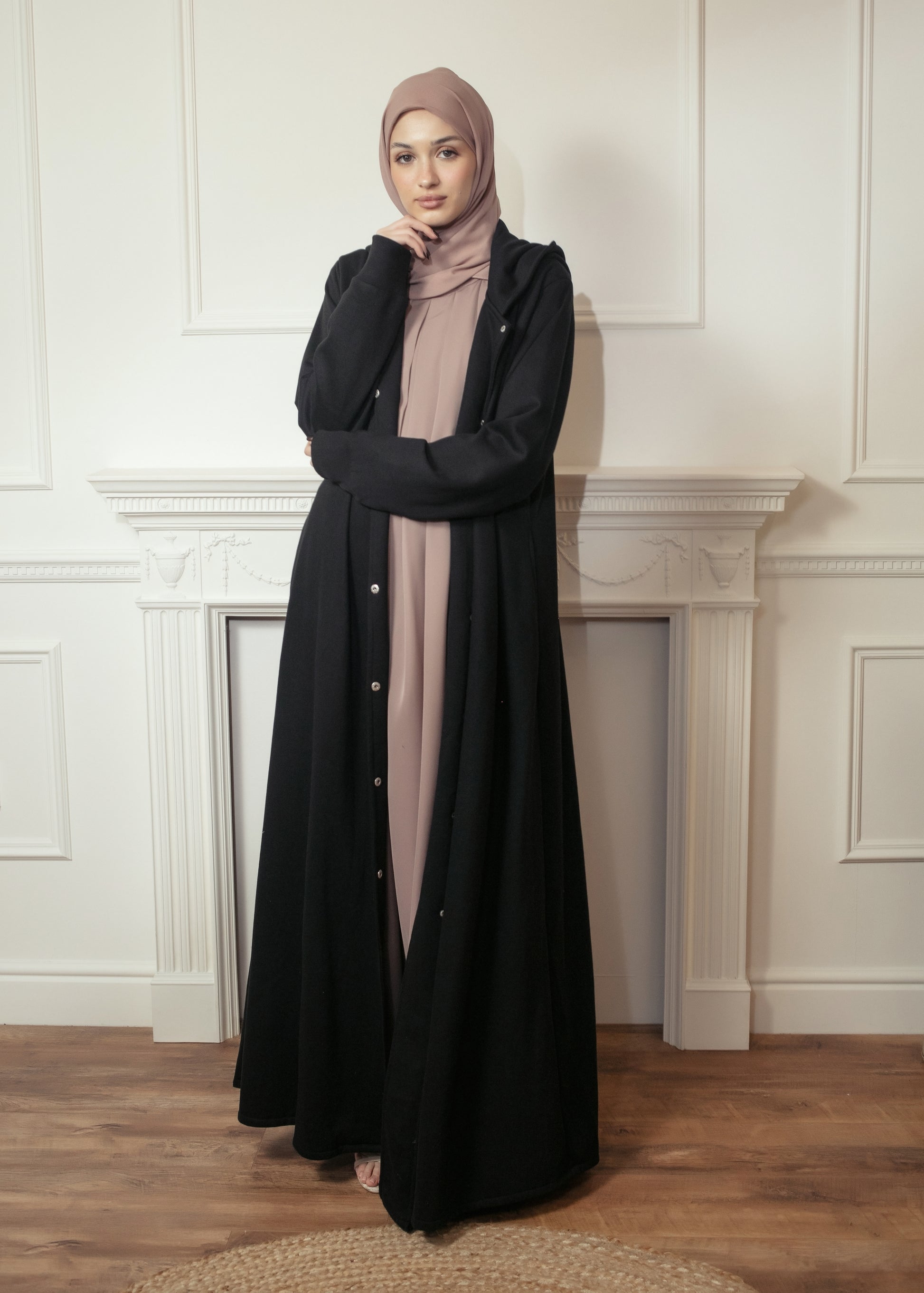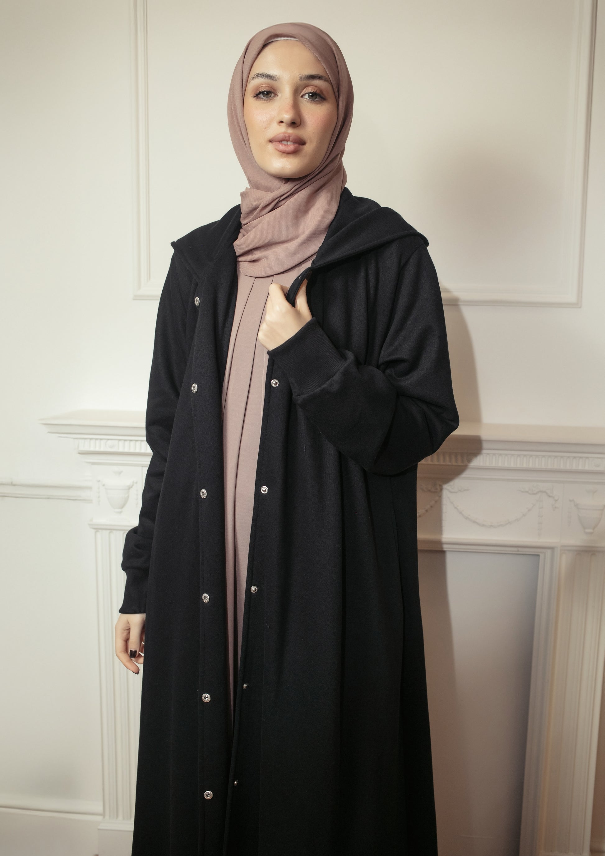 Stay cosy and stylish with our Abaya Hoodie, designed for ultimate comfort and versatility. Made from super-soft, breathable fabric, this abaya features a relaxed fit for effortless elegance. The full-length button-down design allows for easy wear, while the spacious pockets add practicality for your everyday essentials. The attached hood provides extra coverage with a modern, casual touch. Perfect for layering or wearing on its own, this abaya hoodie is a must-have for effortless modest fashion.