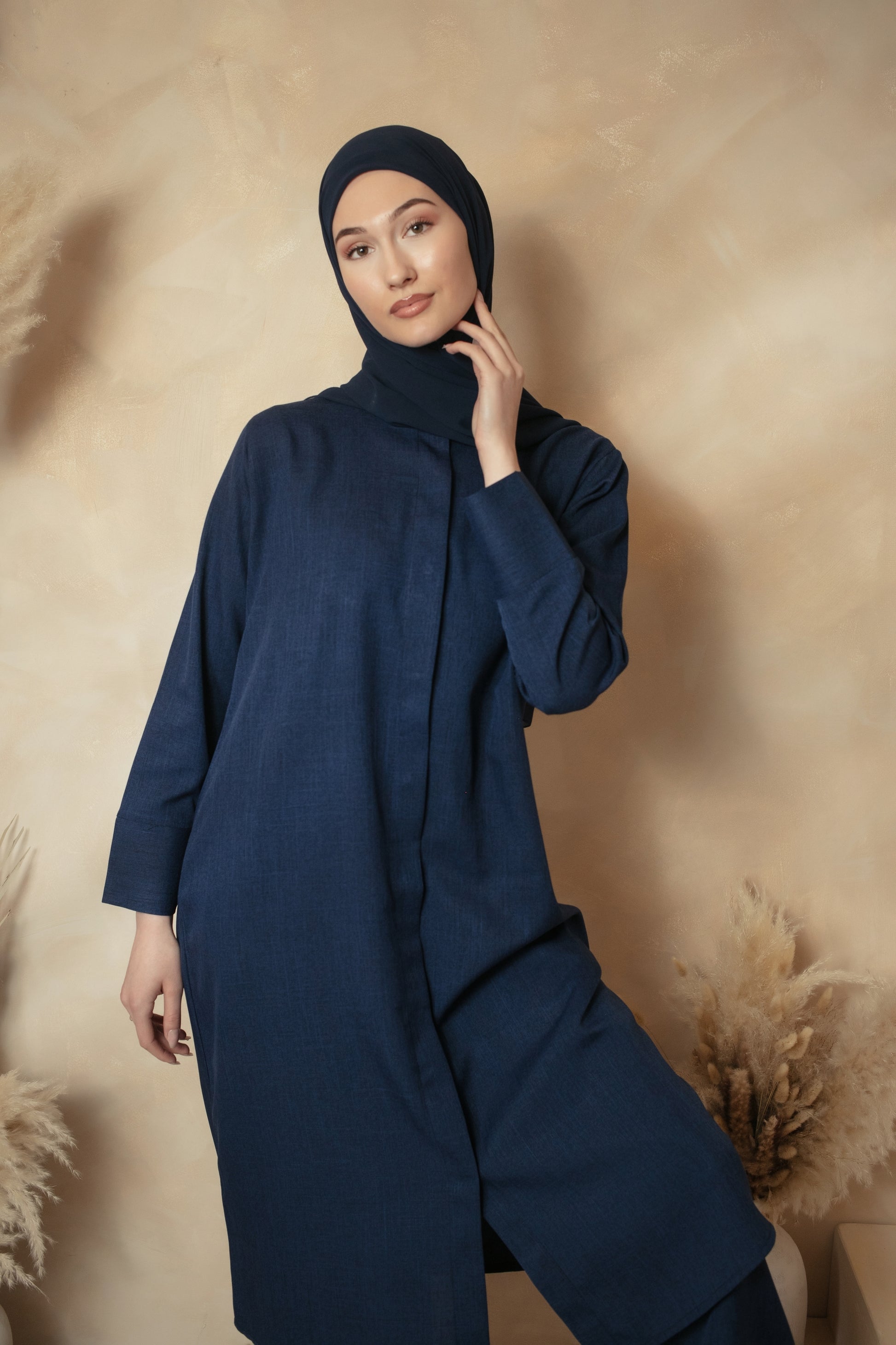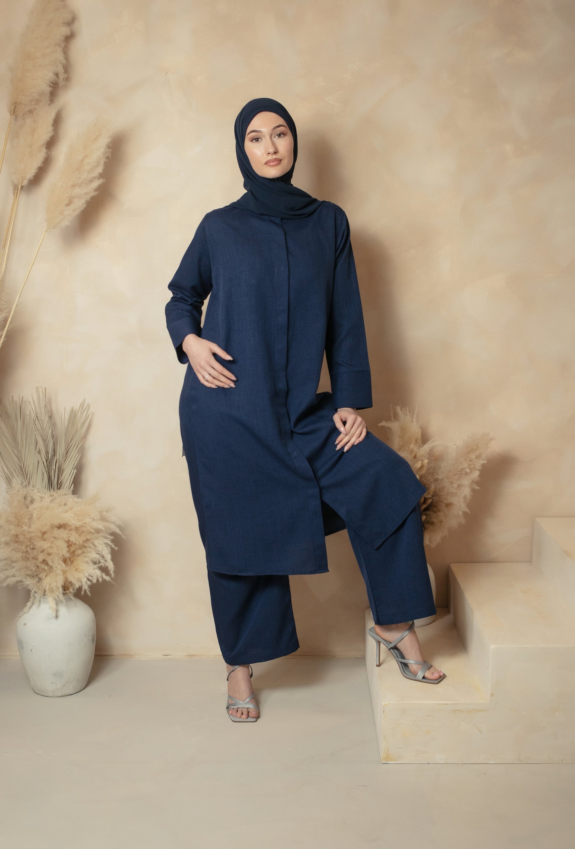 Elevate your modest wardrobe with our elegant navy co-ord set, designed for effortless sophistication and comfort. Part of our exclusive Ramadan Collection, this timeless ensemble features: